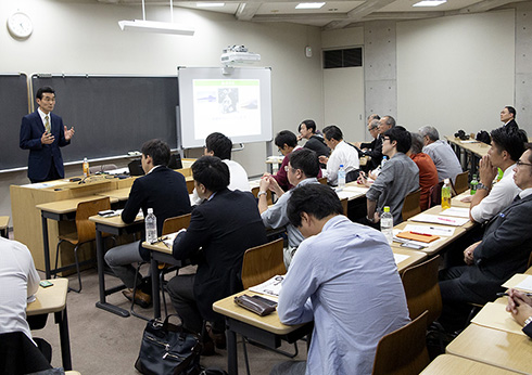松下幸之助の経営理念の位置付けについて解説し、経営者にとっての理念の必要性や将来に対するイメージの抱き方をそれぞれのグループでディスカッションを行いました。